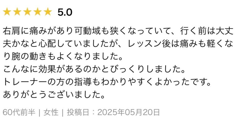 レッスン後には「スッキリした」「楽になった」と感じる方も多くいらっしゃいます。